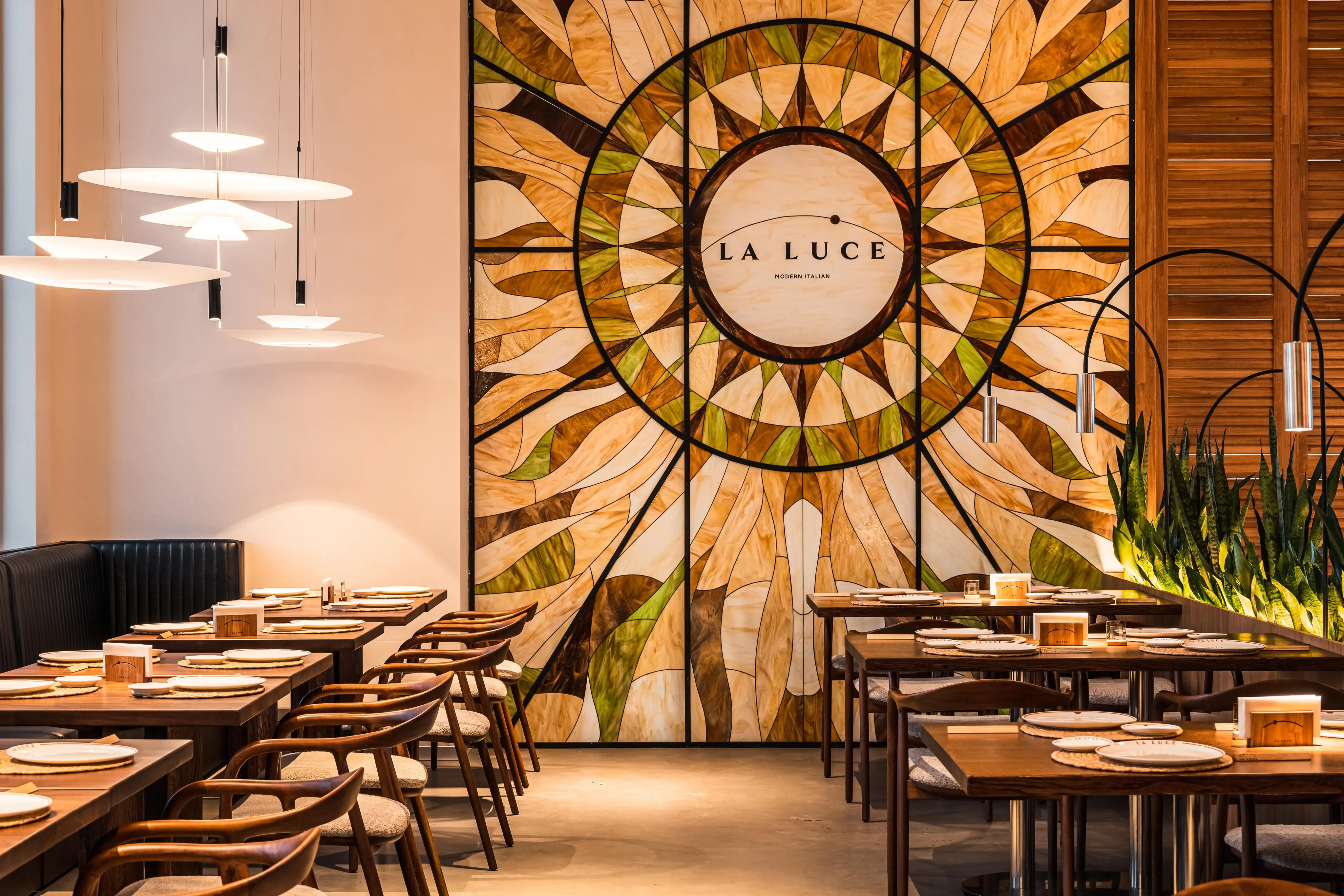 Проєкт реалізовано як «маленьку Італію» у її сучасному, архітектурному втіленні. Головною ідеєю стала концепція «Тепла всередині», де світло виступає не просто як освітлення, а як фізична матерія, що створює інтимність навіть у масштабному просторі. Ми поєднали традиційну гостинність із футуристичними світловими інсталяціями, акцентуючи увагу на автентичних стравах — пасті, піці та стравах на вогні.