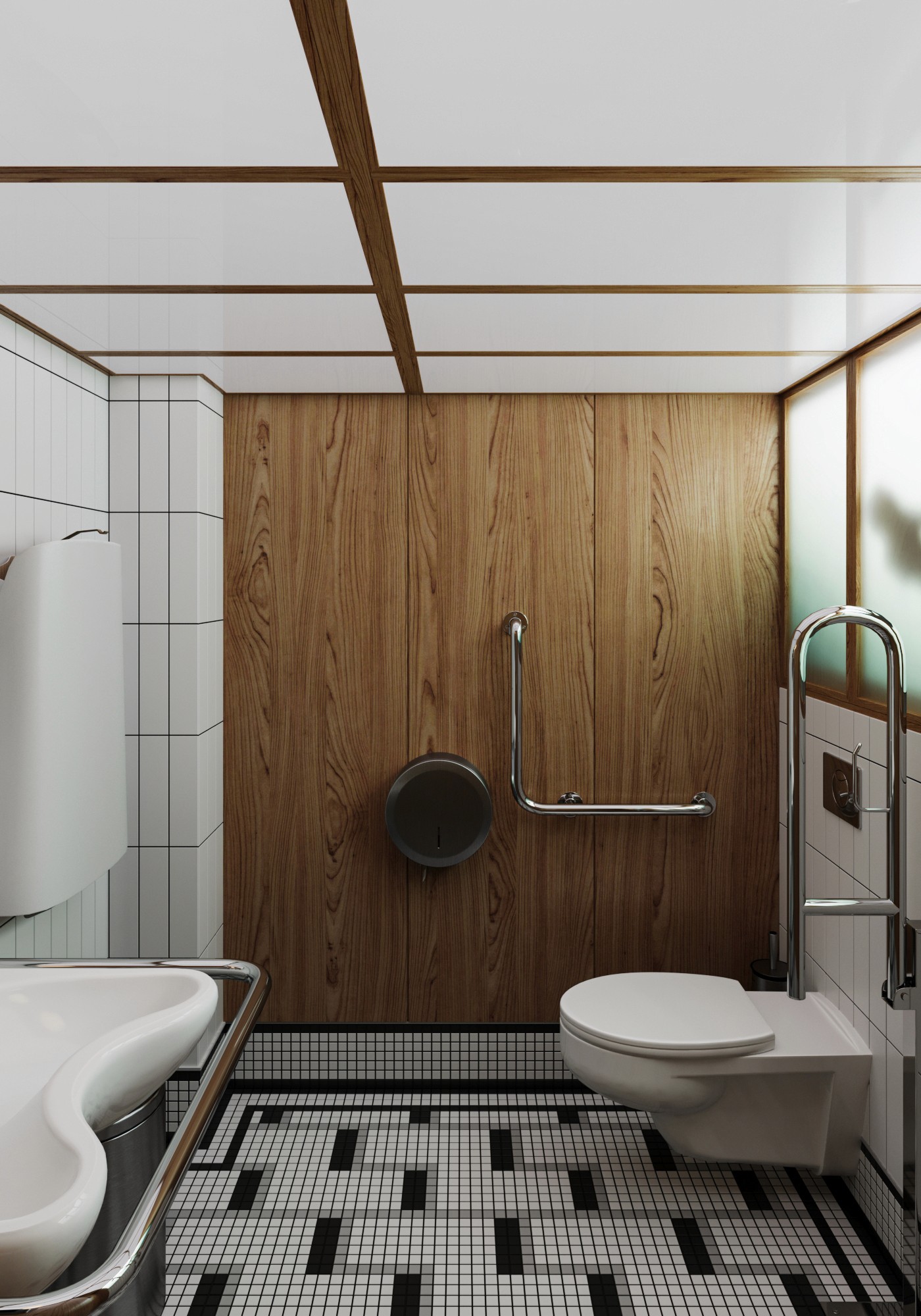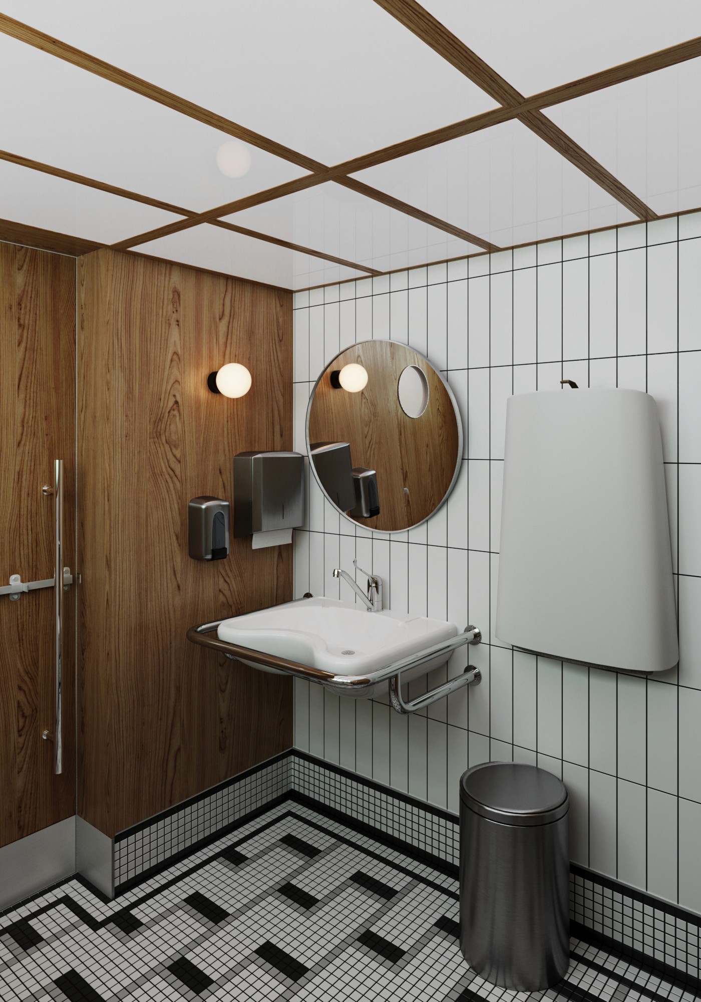 Імітація акваріуму у санвузлі — через «ілюмінатори» видно, що відбувається «всередині океану», а завдяки низькій стелі та обмеженому простору кімната відчувається як справжня корабельна каюта.